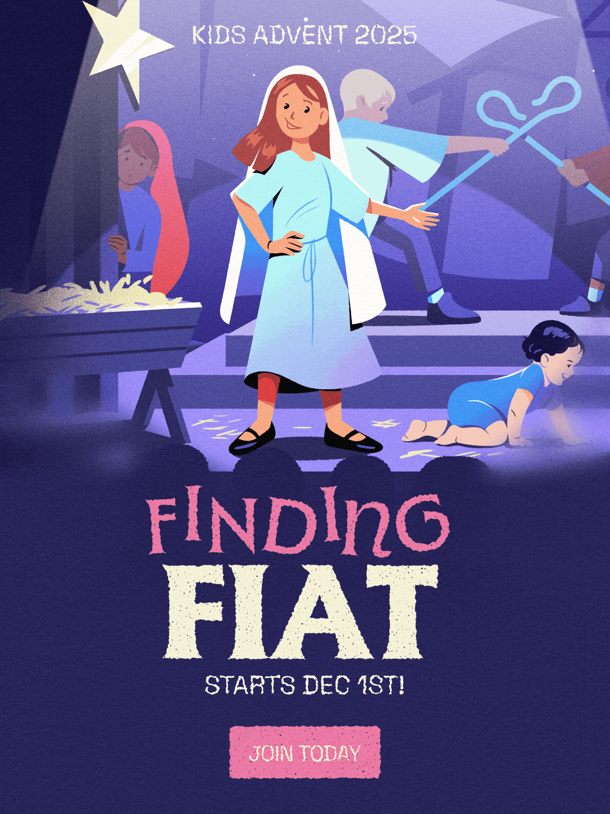 If you’re hoping to spend more time in prayer with your family this Advent, you don’t want to miss our incredible Kids Advent 2025 challenge: Finding Fiat. We’ll journey with young Grace Brumley, who some of you may know from our popular kids’ series Saints Alive, while she prepares for the role of Mary in her school’s nativity play!